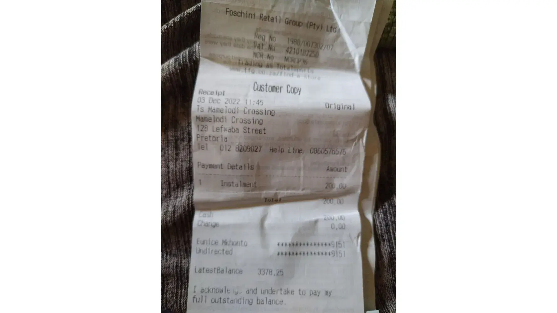 I was traveling back to Middelburg so I couldn’t go to the store to fix this issue so I was making calls to forensic to try to resolved this matter and they failed to assist. They asked me to send bank statement and ID copy which I did however they told me they did not receive the email. It was now their knock of time and still couldn’t resolve my issue.