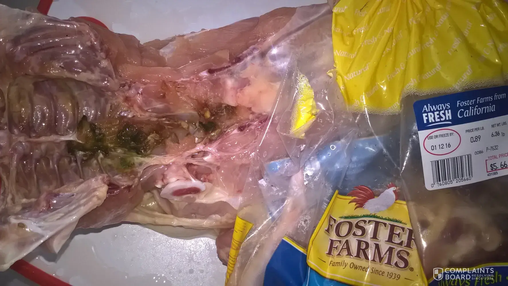 Yo compre un pollo foster farms y me salio completamente verde lo compre en una tienda llamada el super