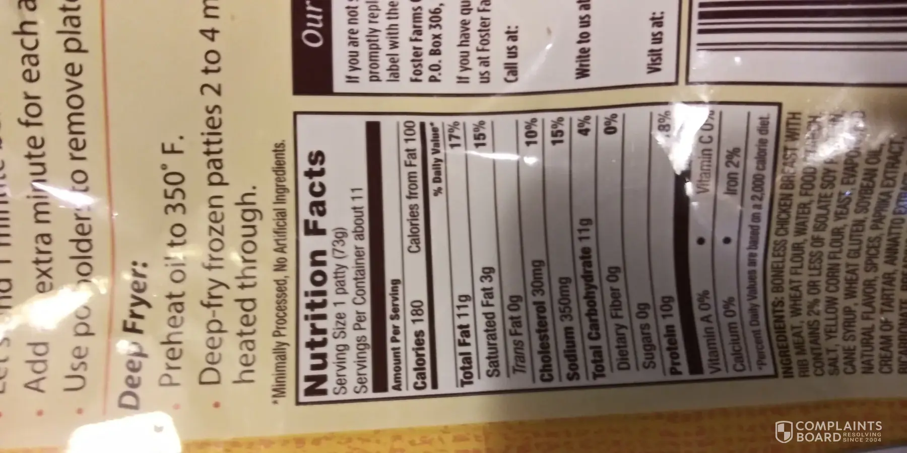 I purchased Foster Farms chicken patties with the serving size of 11 there's only 10 I'm very disappointed and had to remake another dinner your serving sizes should be correct