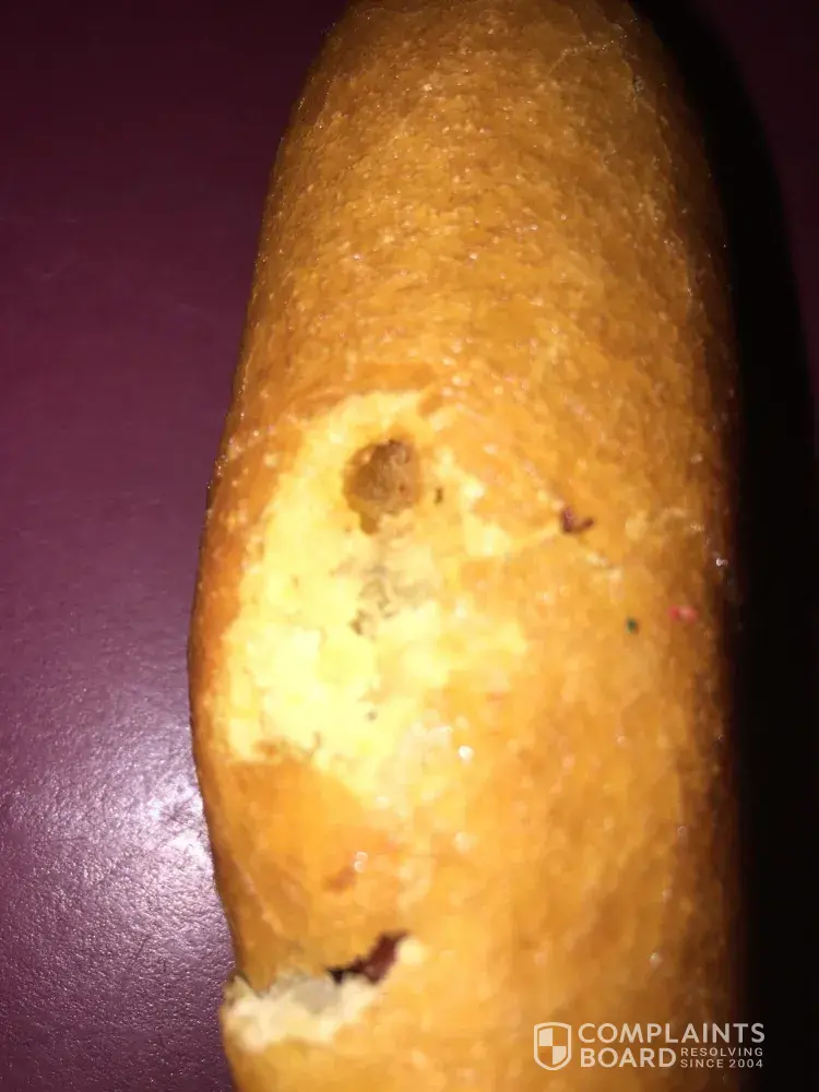 Cooked some frozen corn dogs like we always do. Found a worm of some type in one of them . Will not be buying these anymore. Disgusting. I hope we have not eaten any with worms in them .