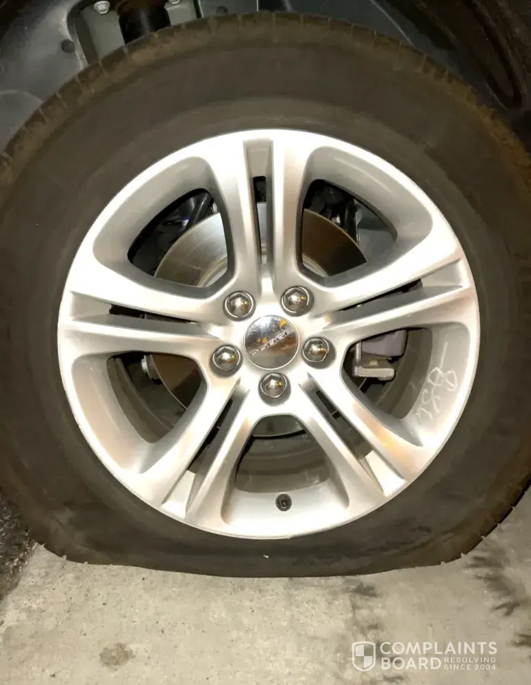 and complain. I came here for work on Friday Sept 10. I didn't want the charger, but it was the only car available. I was driving back from Murrieta, decided to stop and get gas. I was on a side street about 830pm on Sept 14. I heard a huge pop. Within seconds tire pressure gauge appeared and tire was at 18 and quickly went to 12, 9, 6. I pulled over to a lot and it was 2. I called 3 times and waited til 11pm