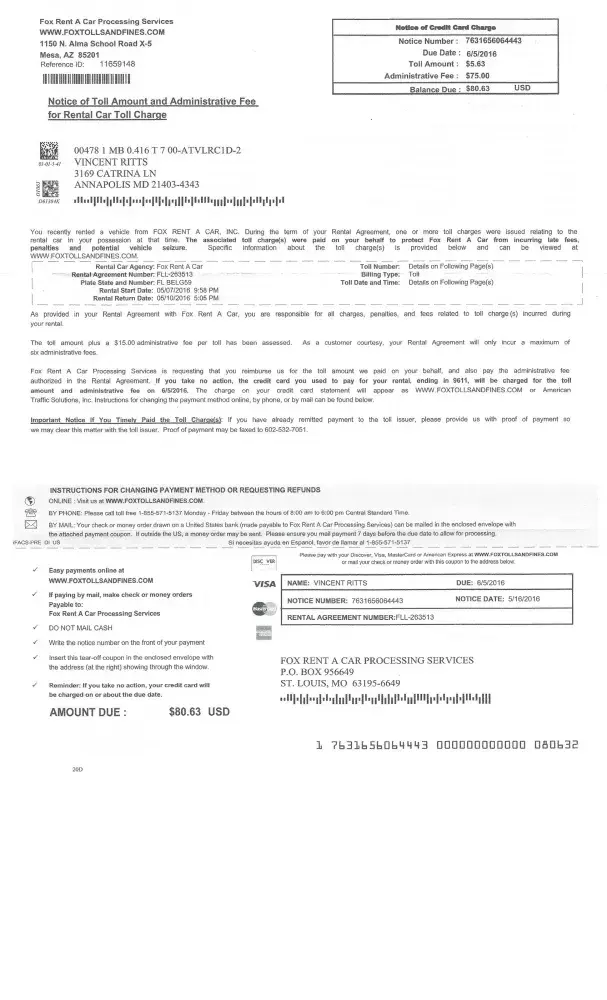 I used Fox Rental Car from 6/25/2018 to 7/1/2018 in Denver, Colorado. During the rental period, I used Highway 470 10 times (each time, the cost is $4.15). I am willing to pay for the toll fees since I used the service. However, I received very surprising bill from the company saying that I need to pay $272.40 and if I don't pay by in 2 days, my credit card will get charged. I believe that the total express toll fees should be a lot less than that. I was NOT warned for the hefty bill when I signed the rental contract. I have rented cars so many times during my military career for the last 15 years, but I have never had this unpleasant experience from any other rental car companies. It is rather scary that your company is doing this. I have been sending emails and files complaints to the company for last 7 days, but none of them are communicating with me. I feel like I am getting ignored.