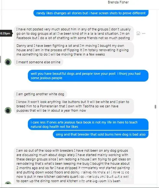 Brenda Fisher is well known for her forgery attempt upon a breeder that she failed to pay rest of the money for a Pomeranian Dog she had a $750.00 deposit on, She purchased Buttons instead for $500.00 from Sheila Santos and failed to pay the remaining money on the another Pomeranian she put a deposit on, She voided her contract and was not refunded the $750.00, When this happened Brenda Fisher attacked the breeder business and went as far as to send the breeder false forged court documents and fake emails from a attorney that did not excist, Brenda also forged AKC papers on a nother Dog she stole which was Inky, He was named Inky after the name the Ink master of New Orleans, Bragging about these forgery crimes she got away with, Brenda has attacked several breeders and other people that believe her master manipulating evil ways and game to con others, she is a high level narsissistic sociopath and our team of fraud investigators has the evidence be on a reason of doubt to prove this, After she became unhappy with Buttons she sedated him to death over dosing him with medication, Brenda Fisher is a extreme animal abuser, her web page she created maddoggurudodo, weebly now shut down for violation prove this with posting about suggesting beating a chihuahua with crow bar, roasting, burying dogs in sand and drowning dogs, Sheila Santos informed Brenda Fisher Buttons had one testiicle in his abdomen and Brenda agreed to haved him neutered and fail this agreement breeding him instead, Later Brenda Fisher attacked Sheila Santos business Yumapoms telling false lies, Brenda Fisher begin to sedate poor Buttons to death by over medicating him, this is where hair loss came in is from that harmful medication she force into Buttons body, These friends of her even follow the web page maddogguredodo.weebly support verbal & visual abuse promotion upon animals Brenda Fisher brags proud on her wall about her creation on the maddogguredodo.weebly page. These followers of her are just as sick as her Randy Boles was one of the main people passing out the maddogguredodo.weebly web page showing verbal & visual abuse promotion upon animals.