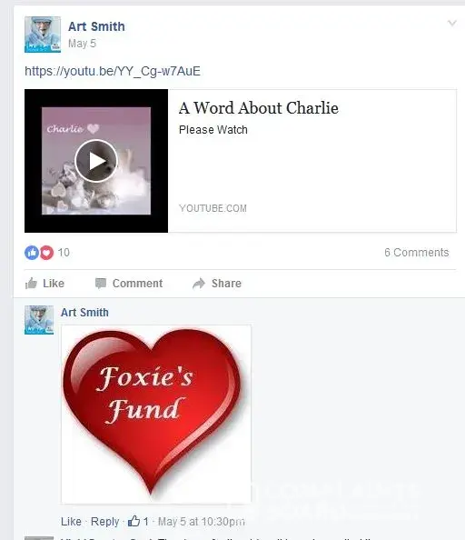 are drawn into their scam to collect to fund their lavish lifestyle, Randy Boles another fraud that helps the group claims Casey mother left him with plenty of money when she passed away, now a good question is if he was left with money than why ask for funds for Foxie's 16, 000 vet bill, The whole thing was set up to fraud others on face book and true bleeding heart story of scamming others, The group has also attacked innocent people that have caught or call them out for fraud, Their first big scam was Cyndi Pomlover real name Cynthia Foster a prostitute scammer claiming her dog Charlie broke his leg, The face book group added her as a Admin later removing her when she was exposed, This was the fastest recovery of a dogs broken leg ever, just remove the tape & popsicle sticks, Art Smith has since remove Cynthia Foster videos on Charlie, Steve Ereth only donates $5.00 dollars a month to Foxies Fund, Although you can see he lives high on the hog from fraudulent donations that pour into this fraudulent organization, Screen shots show clear 100% proof Dominick Tambone's Go Fund Me was frozen for fraudulent activity. Art Smith has since remove Cynthia Foster videos on Charlie, Steve Ereth only donates $5.00 dollars a month to Foxies Fund, Although you can see he lives high on the hog from fraudulent donations that pour into this fraudulent organization, Screen shots show clear 100% proof Dominick Tambone's Go Fund Me was frozen for fraudulent activity