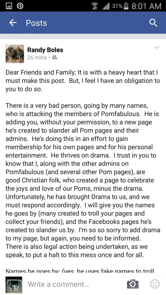 I have watched this play out over the years in the online Pom groups. If those involved can answer a few simple questions honestly we may find the answers many of us seek. If you cannot or will not answer and back it up with legitimate documentation, it may appear you have something to hide or are not telling t he truth. Sherrone: Where did Cubbie come from, how was he transported to you and who threatened to strangle him? Did you report this alleged abuse to the authorities? How long have you know Brenda aka Lynne and under what circumstances, exactly what is your association? Why did you Suddenly move from TX to FL. How many dogs have you flipped or rehomed and for whom? What bonafide rescues are you associated with? Did you have a contract for the rehoming of Cubbie? Did it not contain a medical exception clause? Was Cubbie accidentally or intentionally breed and with whom? What was the medical condition of Cubbie’s puppies. Where and with whom were they placed. Do you have adoption contracts for each of those that were rehomed? Brenda aka Lynne: Who are you Really and why do you have so many aliases? What were the names of your AKC breeding programs and under what name and licensing or certification and for what time frames. Who designed, paid for and updated that disgusting guru website that threatened dogs. Who is responsible for the death threats against Mr Dodd and what is your association to them. who was the man and woman fleeing Brendolyn’s property after it was vandalized? Who promoted all the hate against many others in the Pom groups and what is your connection them as well as to Foxie’s Fund and why were they really closed down? What was Randy's role, What was Arts role, Who was in charge of this non-profit and do you have 501c status confirmation as well as annual reports that were files with the IRS? How many go fund me’s were you associated with that were actually legitimate? Why are there no patient records at your vet. Why is there no record of the attorney listed in you in your complaint against Tammy? No court records of any kind on that issue? What really happened to Buttons? Where did Inky come from and what were the circumstances that you obtained him? Which dog did you break into a home and take with out the owner of the property and said dog owners consent or knowledge. I look forward to responses from you ladies, a term I use lightly based on your previous responses. It will be interesting to hear what you have to say in response as a matter of record. I have a feeling I know the connections and just how big this web of lies, deceit, deception and fraud goes, but do know it will all come out in the end for which many will truly be shocked. There are just way to many coincidences in all of this that really are mathematically impossible. hmmm...know we are watching :)