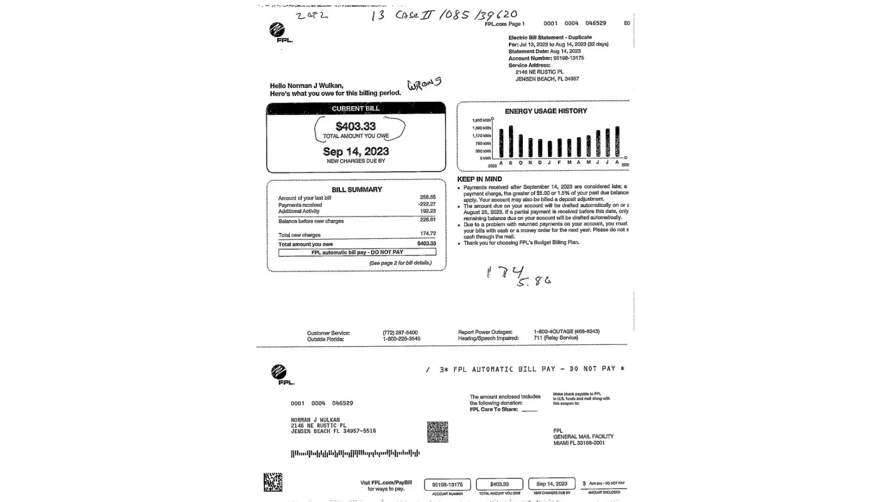 It means we have been invoiced by FPL twice for the same Electricity.