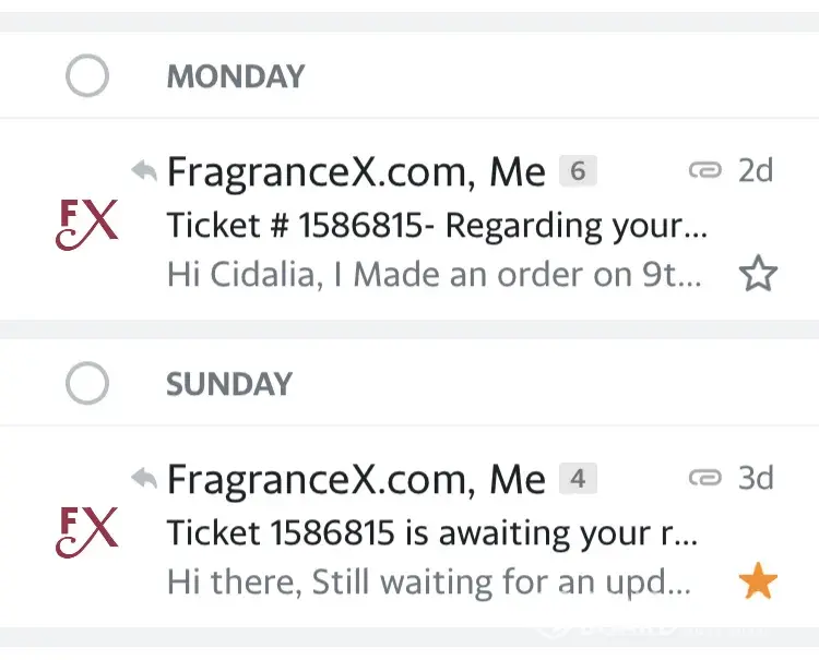 Absolutely terrible customer service.ordered perfume on the 29th of June only to be told that the courier couldn't deliver it which was 2 months later.I was told I would get a refund but customer service will not reply to any of my emails.They didn't even bother to tell me that it couldn't be delivered until I sent them about 20 emails.Fragrance x cannot be trusted.They are a terrible site to order from and the worst Customer service I've ever tried to deal with