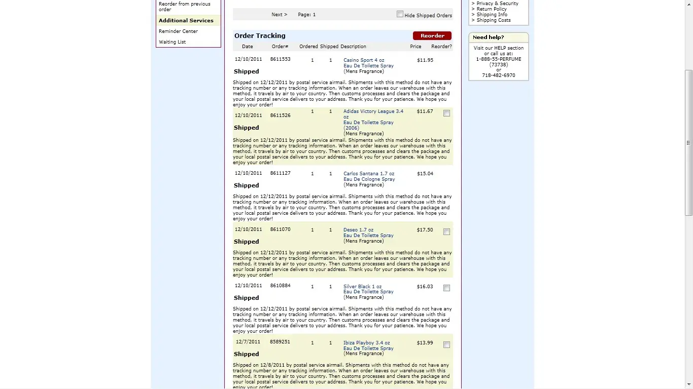 After more than patiently waiting for appeals. I never received my cologne. Paypal did nothing, post office is obviously a waste of time. This is a perfect example how THE USA gives off the pink slip to "legal theft". Keep your hundreds of dollars. Do not order from Fragerance X. The worst nightmare of my life!