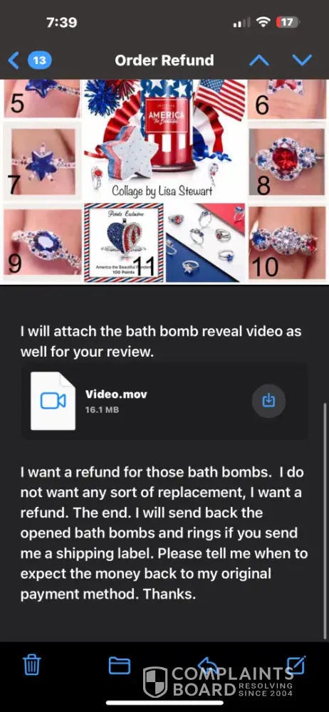 This company advertised 925 Sterling bath bomb and sent me plated rings inside of them instead. They are refusing to refund because the bombs arrived intact. Regardless of whether the rings inside were wrong. I’m looking into finding a lawyer. They’ve been paid and switching people for years and just counting on people not to complain. It’s time to complain.