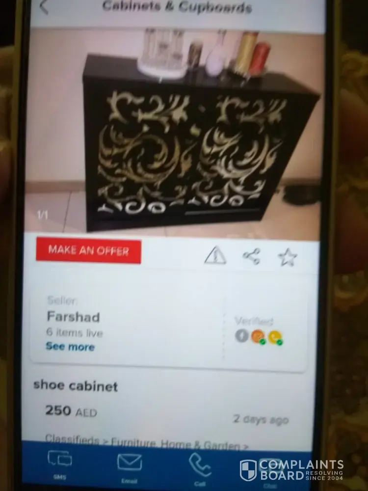 An additional has been placed by user from Sharjah for all household stuff from Which we picked up shoerack which he said for 250 but now when we went for pickup he's saying my wife has changed her mind and now we want to sell it for 400.