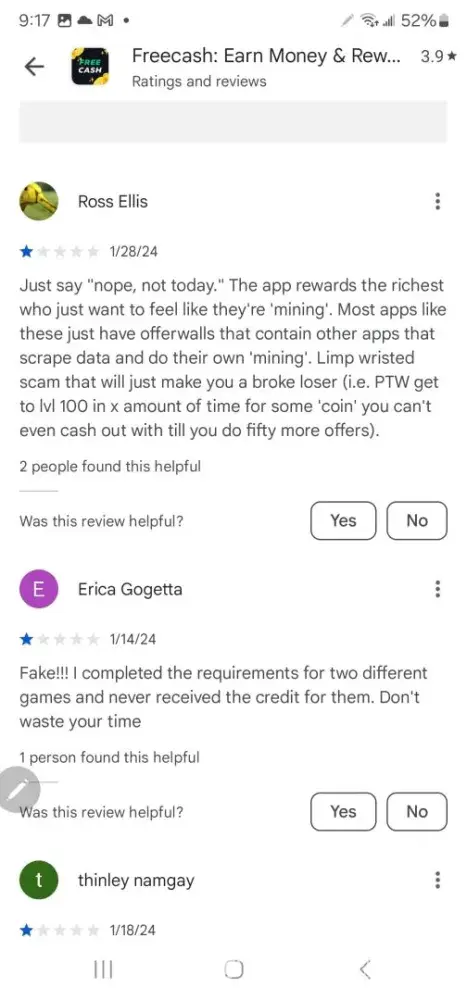 My experience along with thousands of other victims, with FreeCash app and their affiliated game, Dice Dreams, has been nothing short of frustrating and alarming. Like thousands of others, I fell victim to false advertising promising monetary rewards for playing games and completing surveys on the platform.