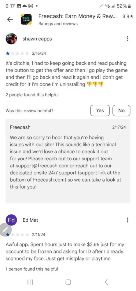 Adding insult to injury, FreeCash app's customer support was unhelpful and evasive. Requests for assistance were met with dismissive responses or outright account freezes. The company's insistence on collecting sensitive personal information, including IDs and passports, raised further suspicions of malpractice, with rumors of such data being sold on the black market.