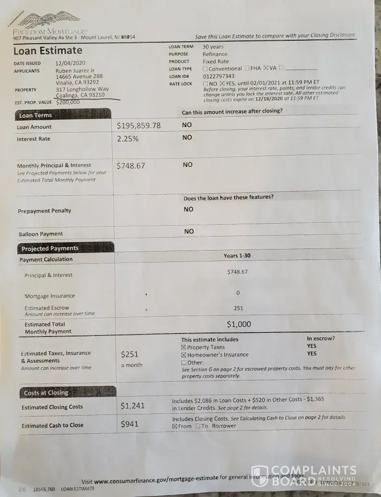 We recently refinanced with Freedom Mortgage in February. We were contracted for _____. By March, we noticed that our monthly payments increased and kept increasing each month. I called more than 5 times in the last two months and sent an email complaint to find out why our mortgage rate increased substantially. I was told it was an escrow issue. It is interesting that this seemed to occur after I sent our recent tax bill to to Freedom. My guess is your company may have duplicated the taxes on our escrow and raised the monthly mortgage rate because of that error.