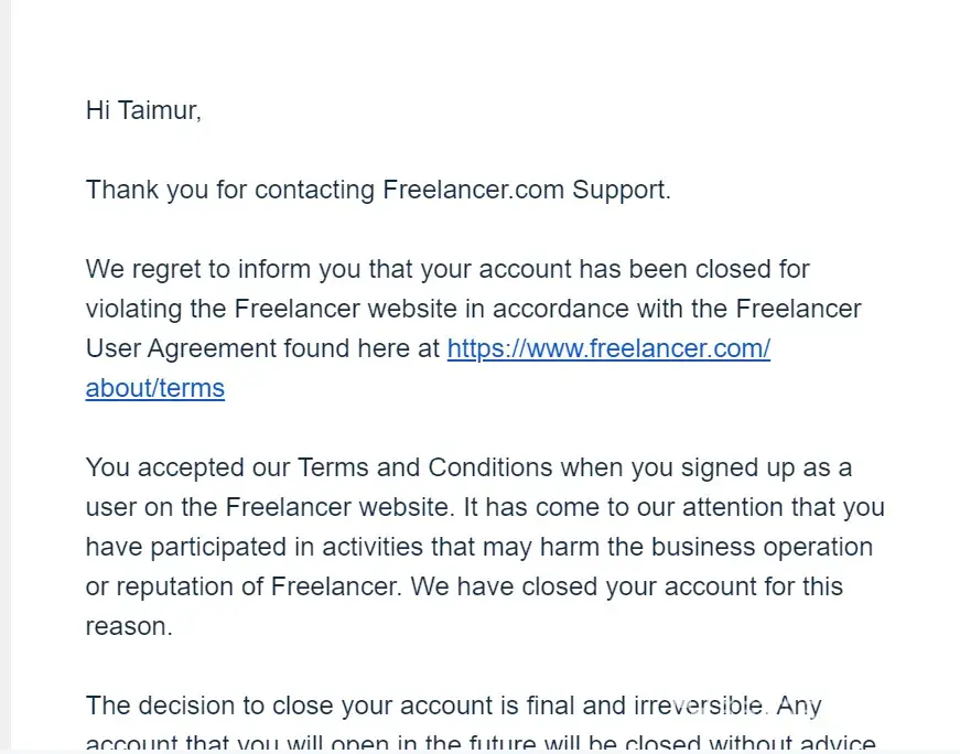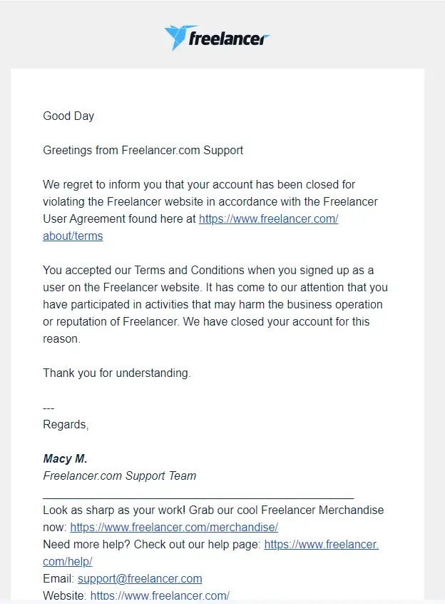 Freelancer.com Account suspended