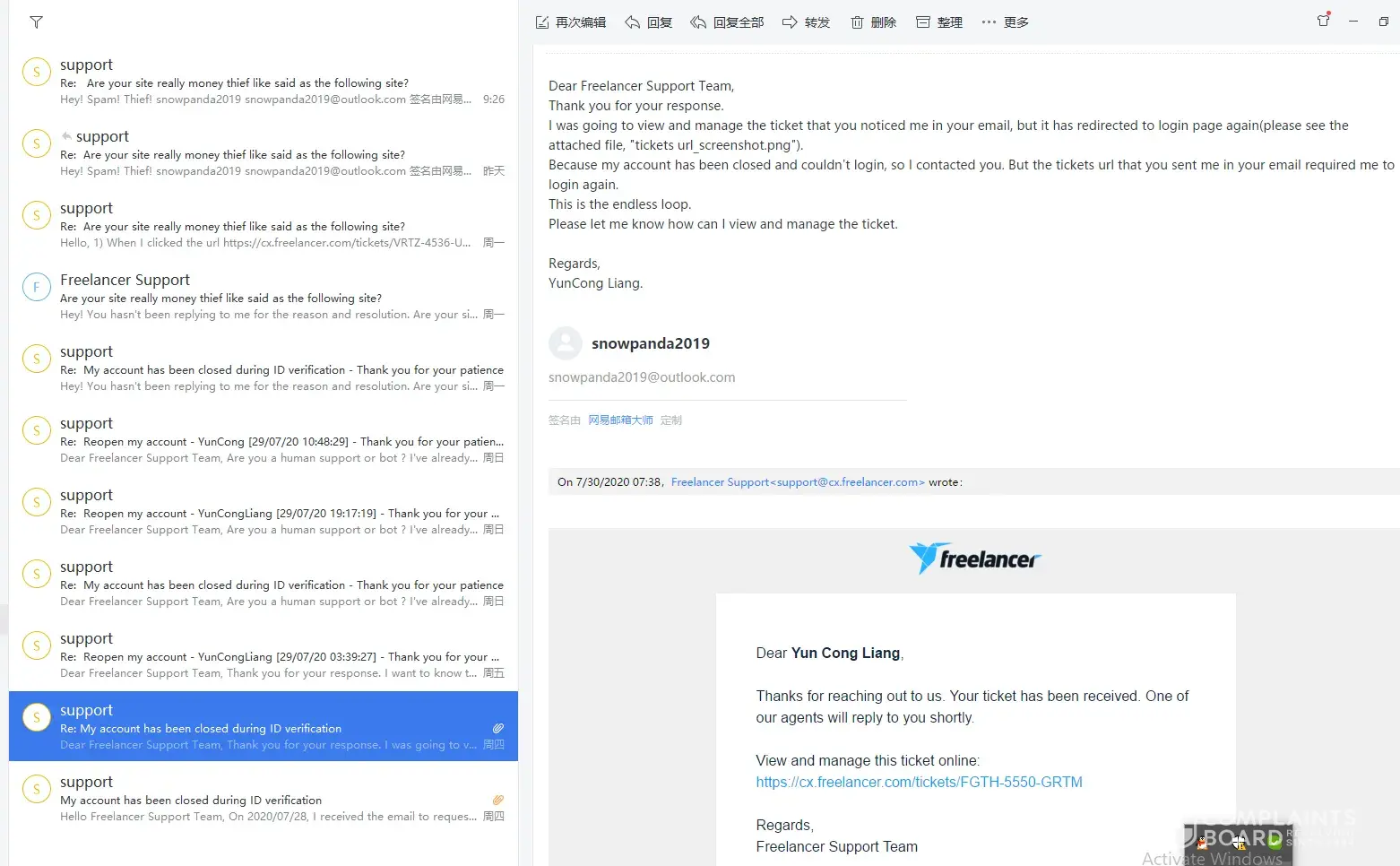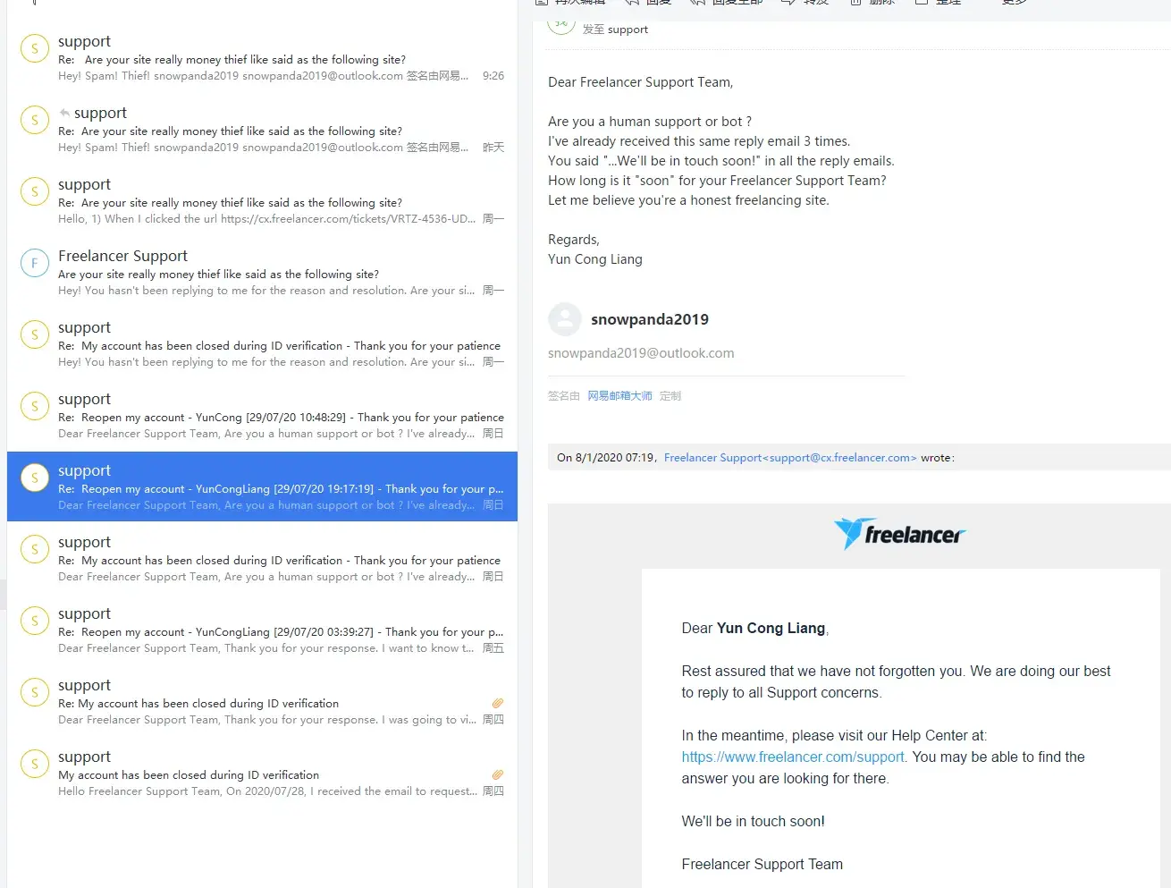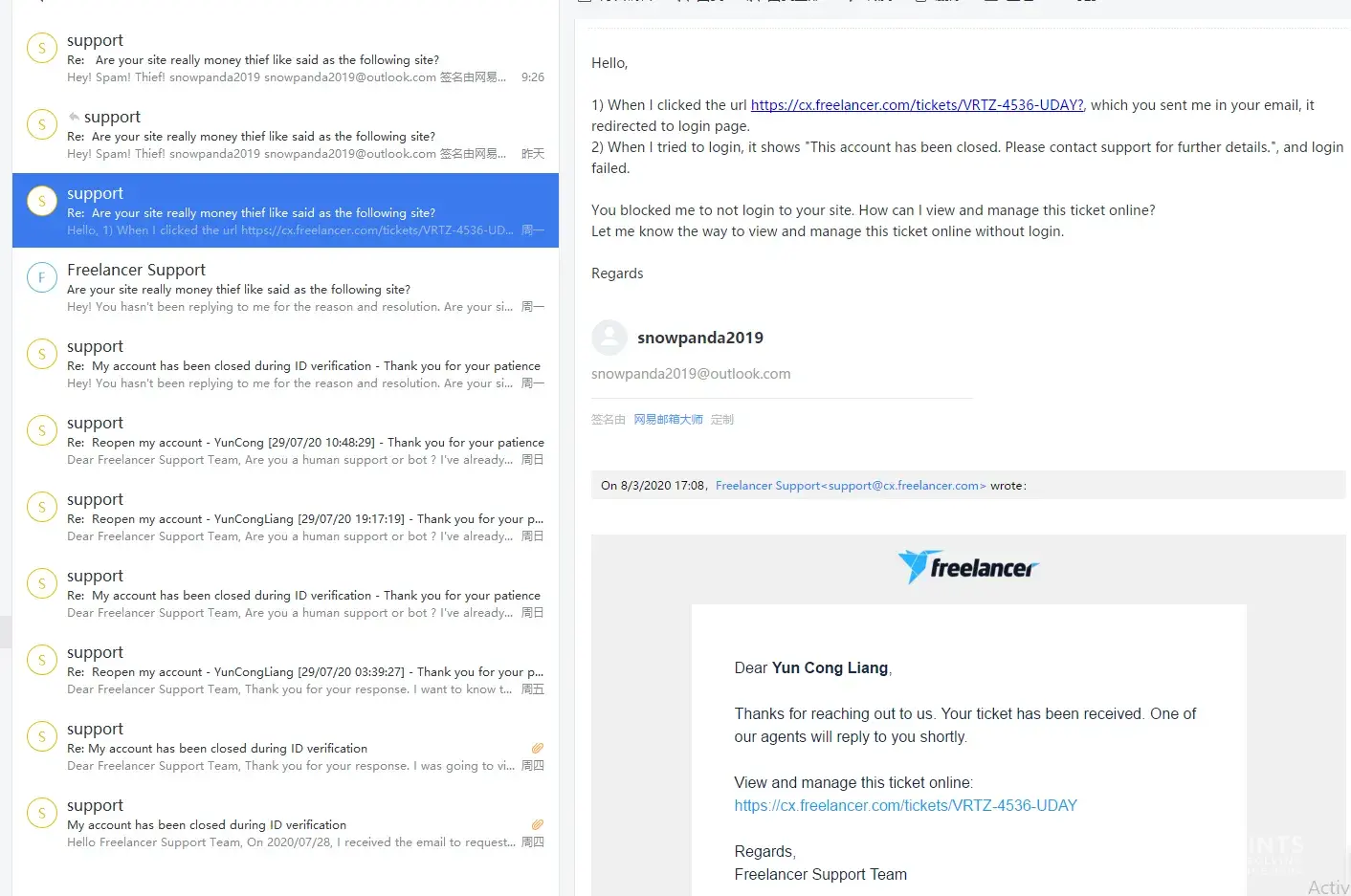 In the evening, I continued to email them [protected]@freelancer.com and submitted my complaint on the website. I continued to email their support to recover my funds, only to receive their typical automated reply: We understand your concerns + email template.