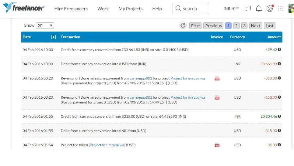 Transaction History: https://www.freelancer.com/payments/transactions.php