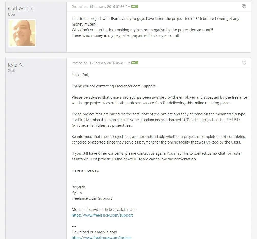 Hello, I'm writing here because I had terrible experience with Freelancer.com It letterly stole my money, I get a job with 1250eur the first thing they did is deducting 125eur project fees after finishing the first milestone with 650eur the employer deleted the project two days latery my funds are gone! I contacted them and they said the employer account suspended. Now I loosed my money and paid a fee for that! Why they didn't verify users and payments? Why should I handle the fees of their bad system?
