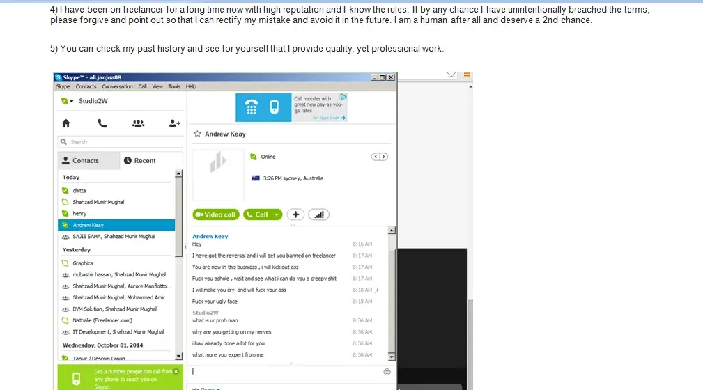 or giving me the reason. They just told due to some employer complain but where is the name of employer. The account was Limited Before but about an hour it got suspended all the clients are in skype list and I asked them that did you complained about me they said no then why the hell freelancer