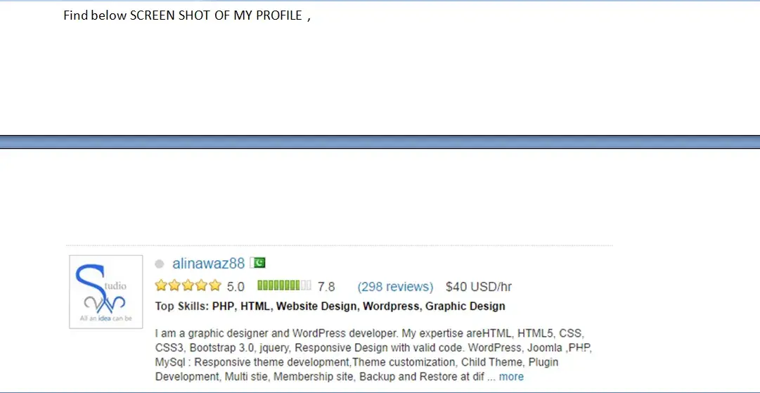 I have painstaking maintained an amazing profile with over a hundred testimonials and a perfect review score on all the parameters that they consider. This is what brings me new projects, new clients