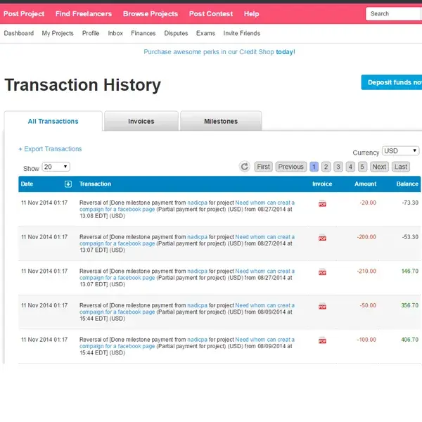 freelancer reversing money received