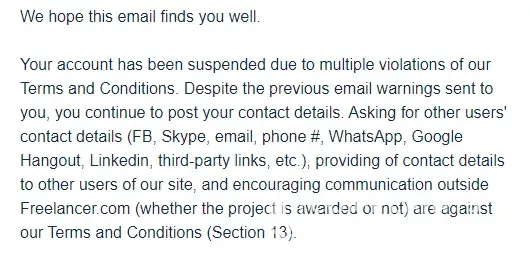 Freelancer.com Suspended account