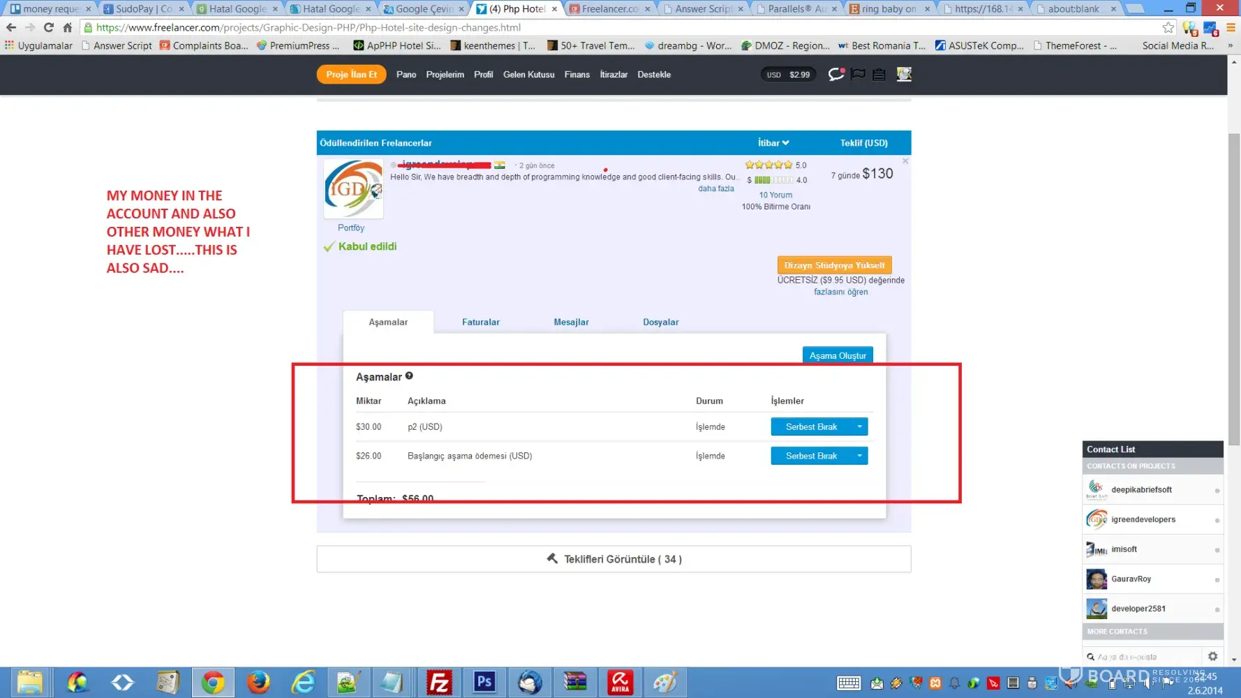 Willcfromfreelancer.Com freelancer user, says we support you, the more reality i type the more my account limited. . . I guess i shold give from your freelancer.Com because you dont have a phone number like ebay, paypal etc, second you ask over information as if fbi, 3th my account hacked there, 4th i you hold all of my money in the account and this is illegal, 4th you give fake decitions for people which are not realistinc, 4th if you would have normal phone call and help service, it would be better for anyone, 5th you creat kind of game to me to hold my deposited money in the account, plus relased payments, 5th: you caused me big sycological demage, 6. Shame on you. . . Now go shot my account down. . . As far as i see, you aim is to put hand on my money. . . You are not fair. . . Because the world is not fair maybe eccept expectations.