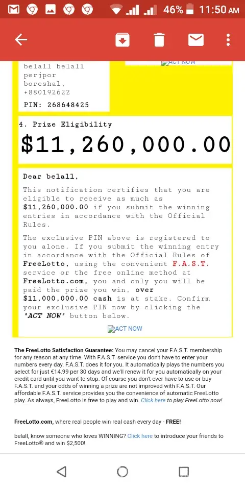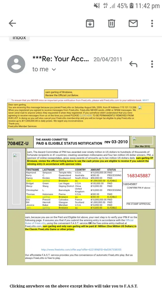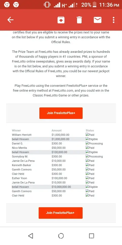 Freelotto... As you see in photo... I played and won in mega million game... I sent many emails to [protected]@freelotto.com and [protected]@freelotto.com to claim my prize but I don't receive any reply or respond from... Why?
