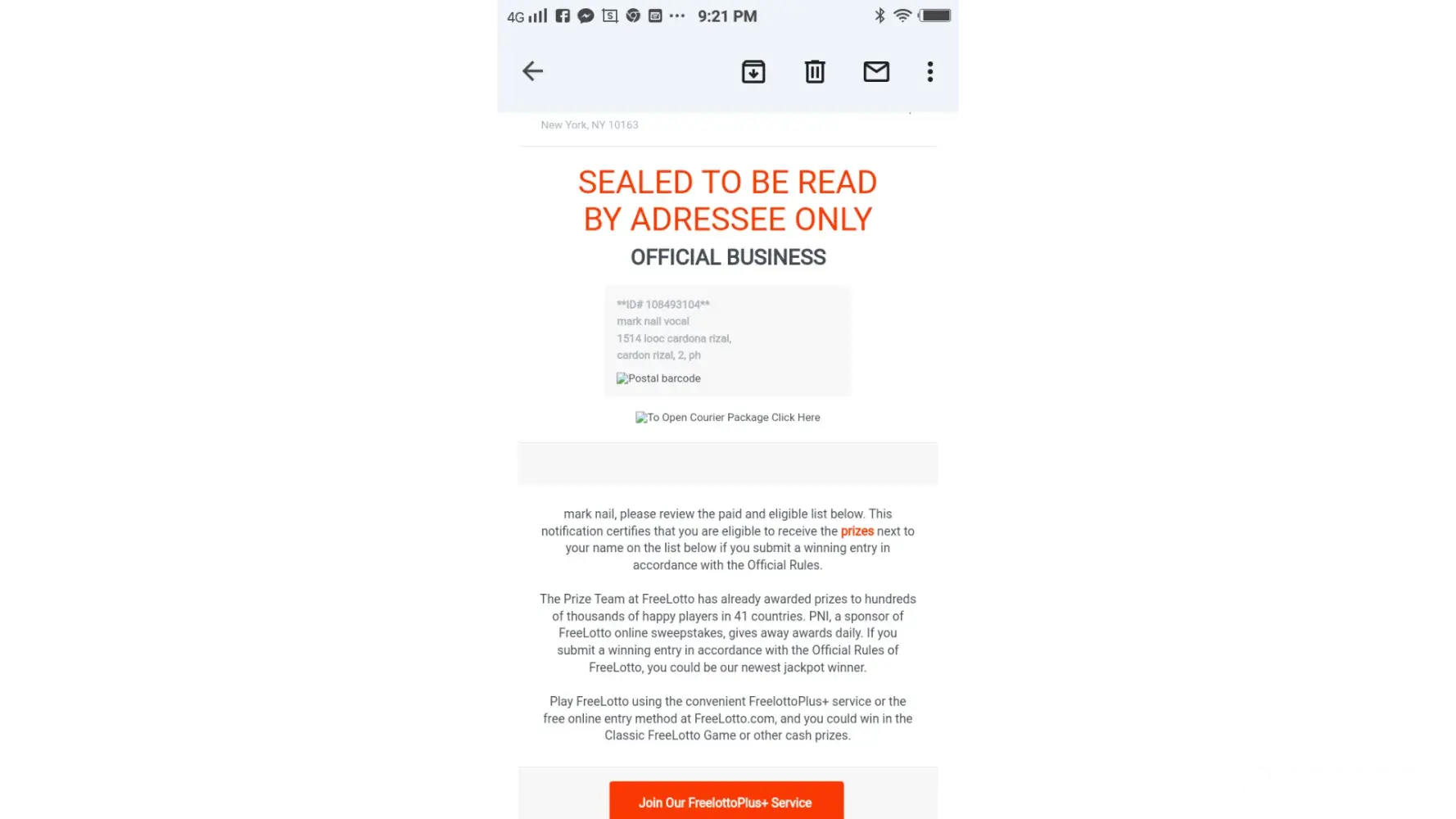 So Freelotto must send it by DHL and you must record my phone with addaition to my address as my profile on envelope.