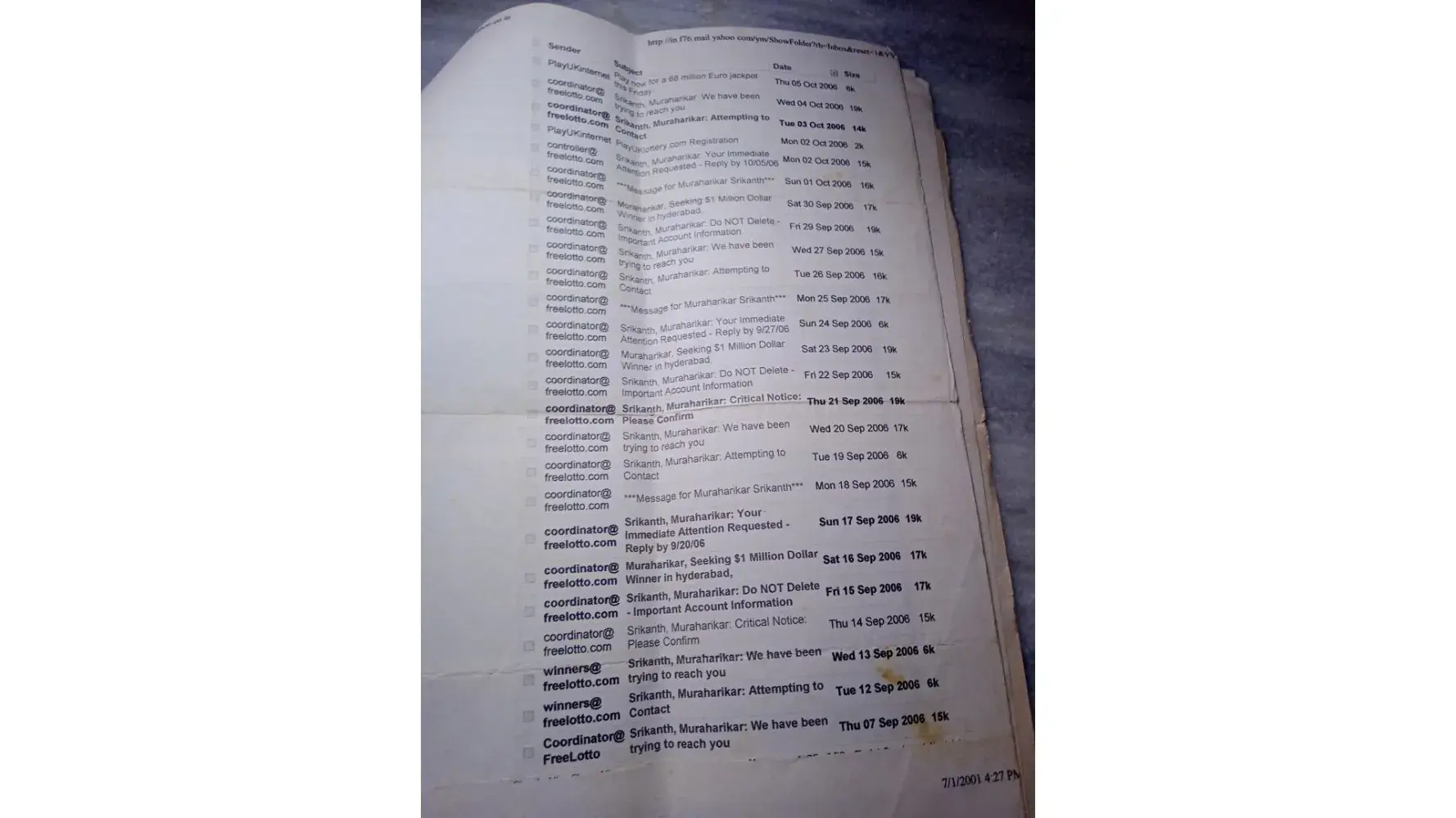 After providing my details also the emails from freelotto as trying to reach me and other emails asked me to give my details again and sended them with checks attached to their address ,for as a long time still I haven't received the amount, my email add when registered is [protected]@yahoo.co.in,