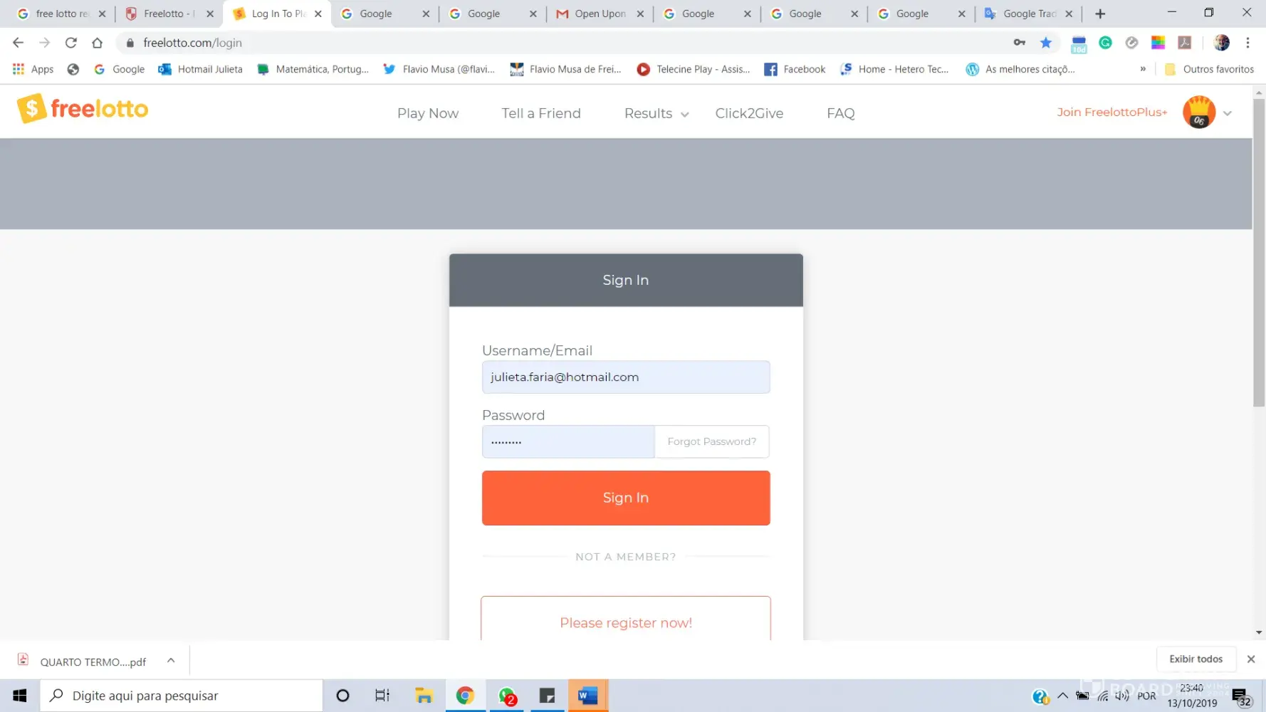 I click on "Play Now" and ... You say I've already played, that I can only play again after so many hours. I never receive the results of the supposedly placed bets.
