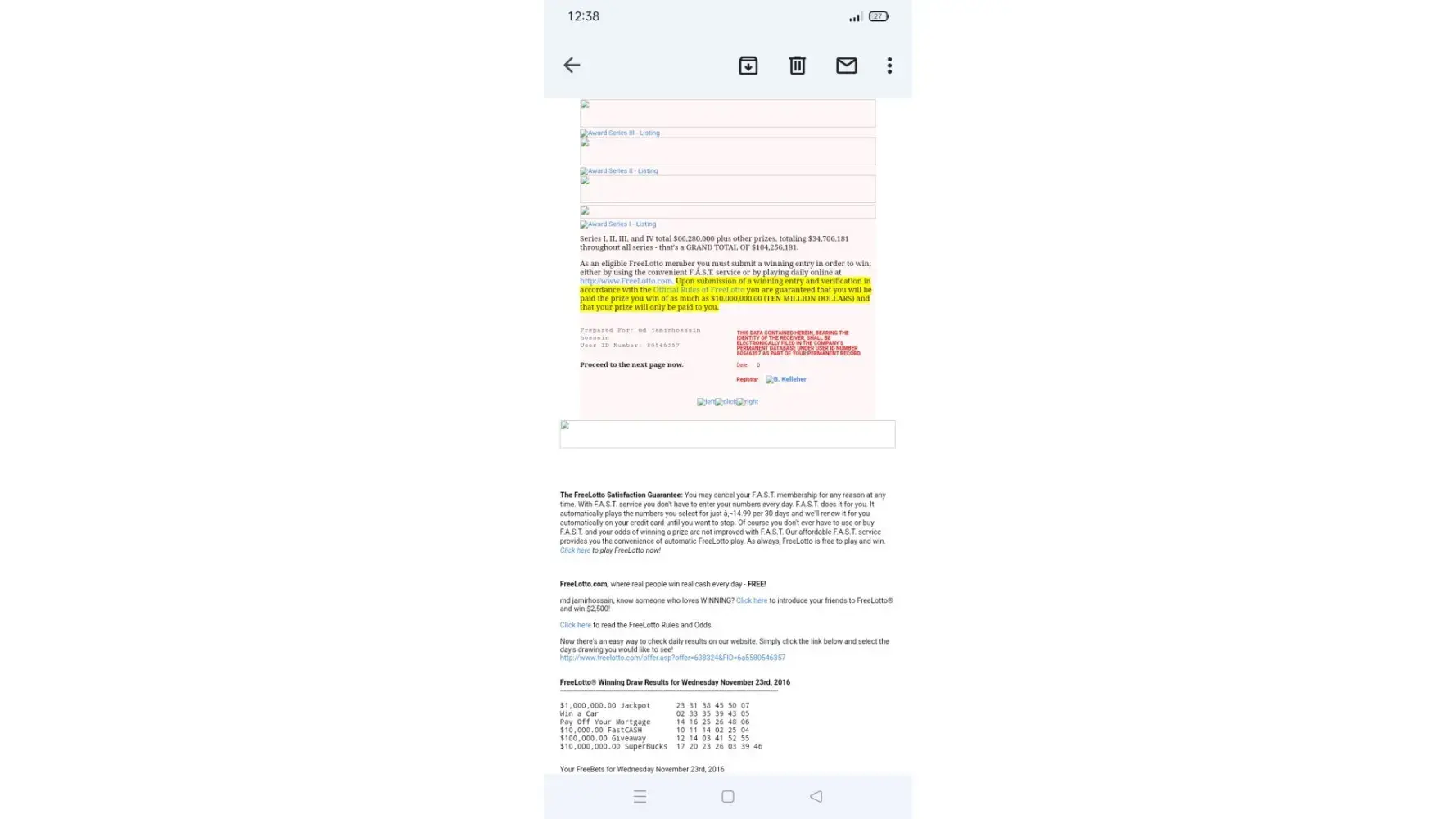 i hope you will fine here is all fine but i recieve a email from freelotto