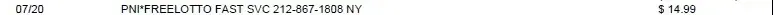 I noticed that I withdraw from my credit card bill every month the amount of € 14.99 which add to the costs of exchange PNI * FreeLotto FAST SVC [protected] U.S., but to which I am unaware of having joined this game, much less monthly. I want it made ​​the cancellation of direct debit in the account on my credit card straight away contacted my bank and they told me that it is only possible through their FreeLotto, but I get no response.