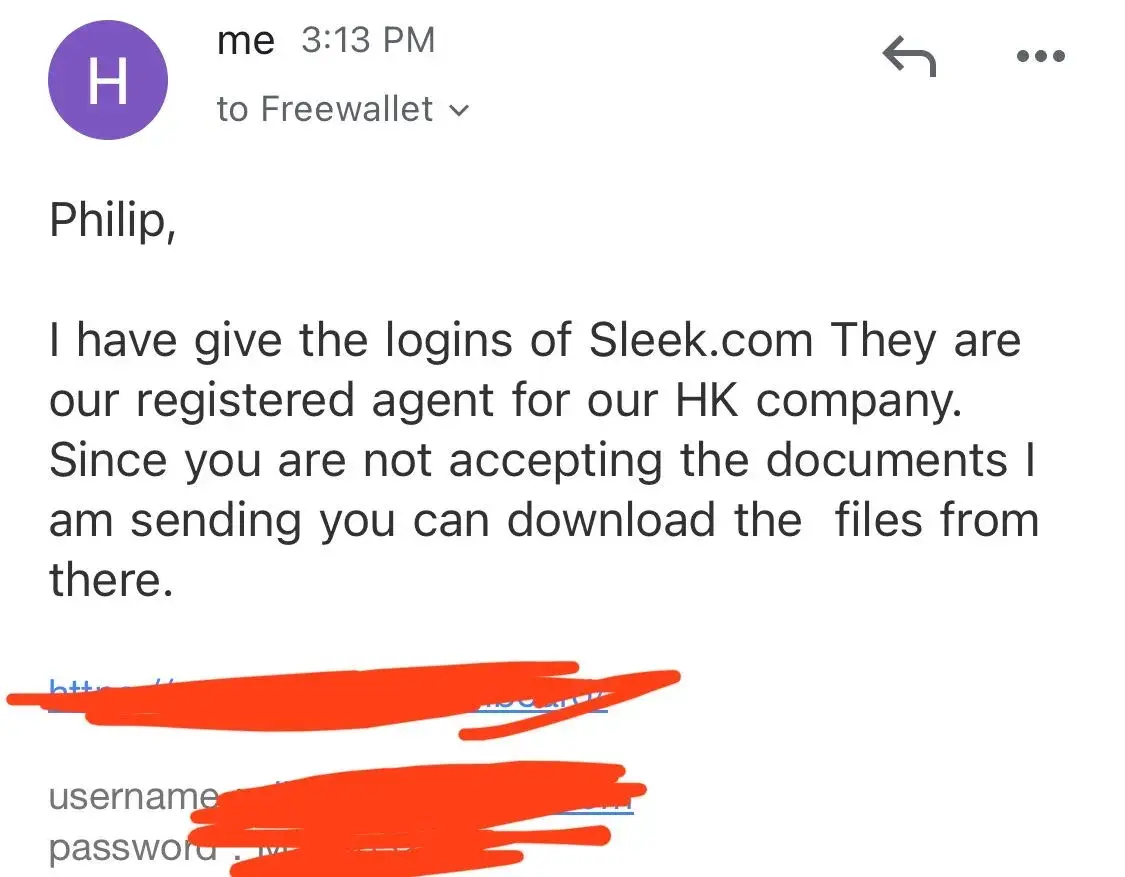 The problem I am trying to say is that, what ever the docs I am giving, your support person Mr. Philip simply say to send the certificate issued by authorities. I am giving the certificates issued by authorities only. On my last email, I clearly mention that Sleek.com is our registered agent for Hong Kong and all the company documents I have is in their portal. I shared portal logins to your support team they can login and download the certificates and business registration certificates from that.