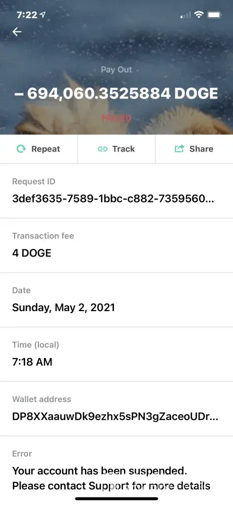 In year 2018 I have made account in cryptocurrency wallet in android app whose name is Freewallet owned by website freewallet.org and mined cryptocurrency named dogecoin and done some treading using that Freewallet account it was working fine back there, but now when I have reopened that account to check my holding of dogecoin they didn't allowed me to transection through my wallet, and there is written that my account is suspended,