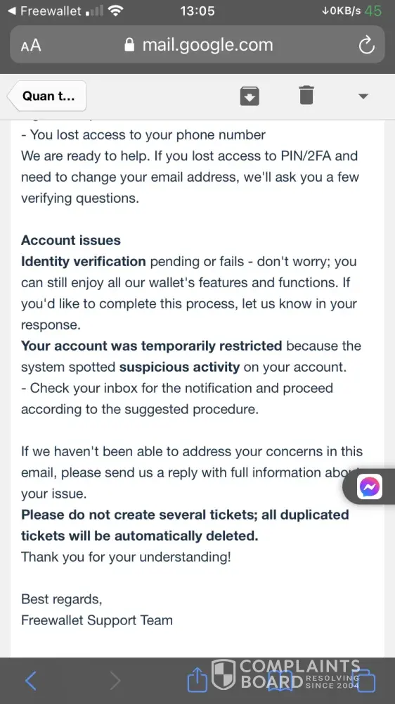 The influx of negative reviews from people whose funds have been inexplicably frozen does not bode well. Freewallet has done little to change this perception, ignoring users in their time of need.