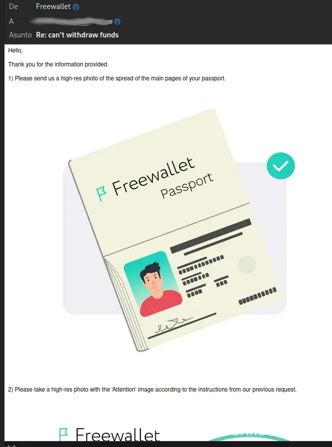 FreeWallet has kept my money hostage since June of 2023. They finally responded by claiming my account was opened up to withdraw and told me I had ten days to withdraw my funds. When I when to withdraw them it still shows suspended and unable to withdraw. No further response the last tree days. They’re scammers that will keep telling you to provide the same information over and over again. I’ve had two ticket ID’s 468248 which I believe is the one they’ve most responded to, but also have 468281. Their last email came through on 2/6/25 and no response since after three emails to unsuspend my account so that I can withdraw.