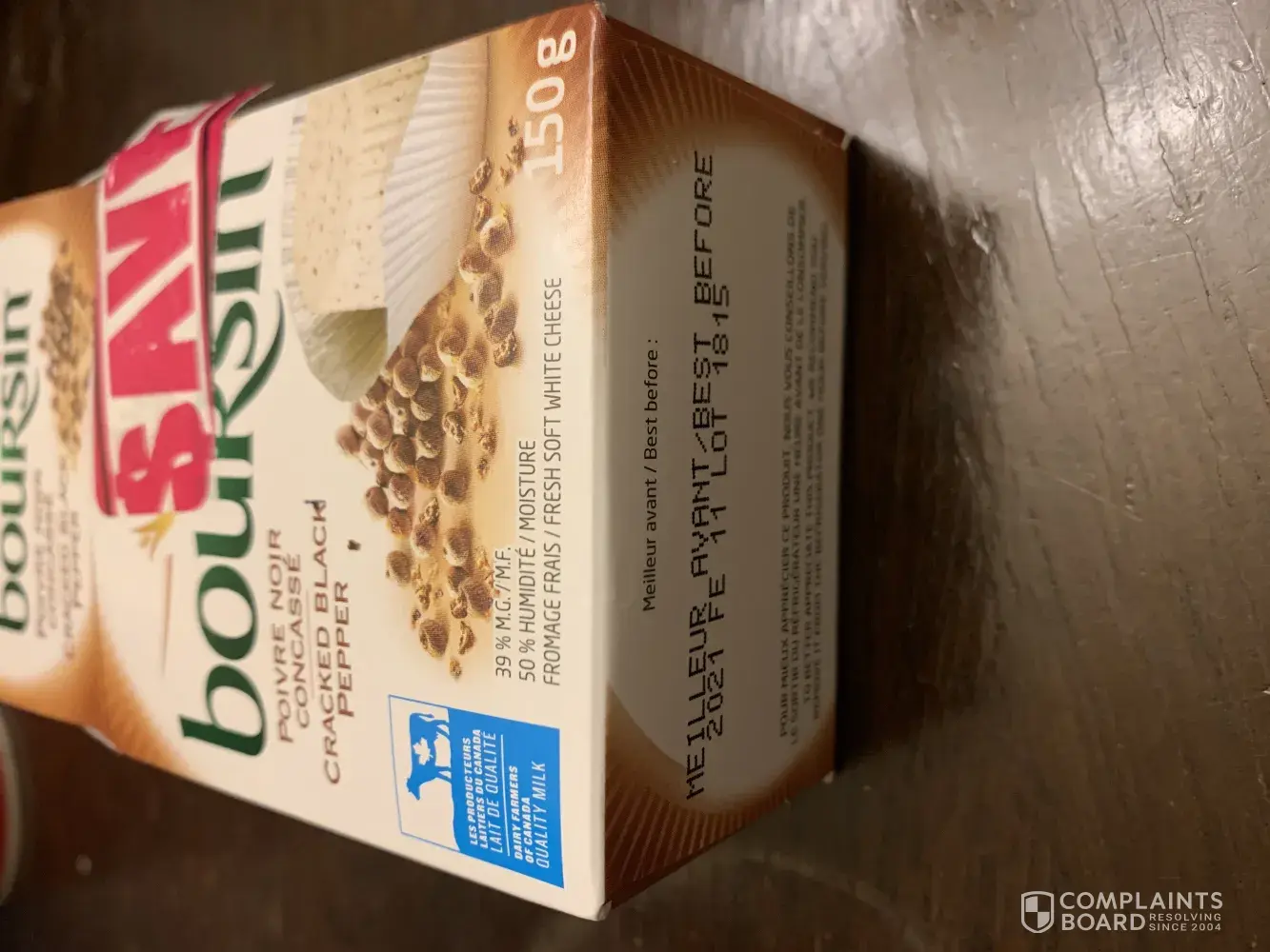 I am sad to bring up this concern today. I was at my local store and bought a Boursin cheese product that was discounted and thought I was getting an awesome deal. Found out otherwise when I got home to open the product to find it was all moody inside. Checked the best before date and it expired the day before my purchase. I am saddened by the fact that one...