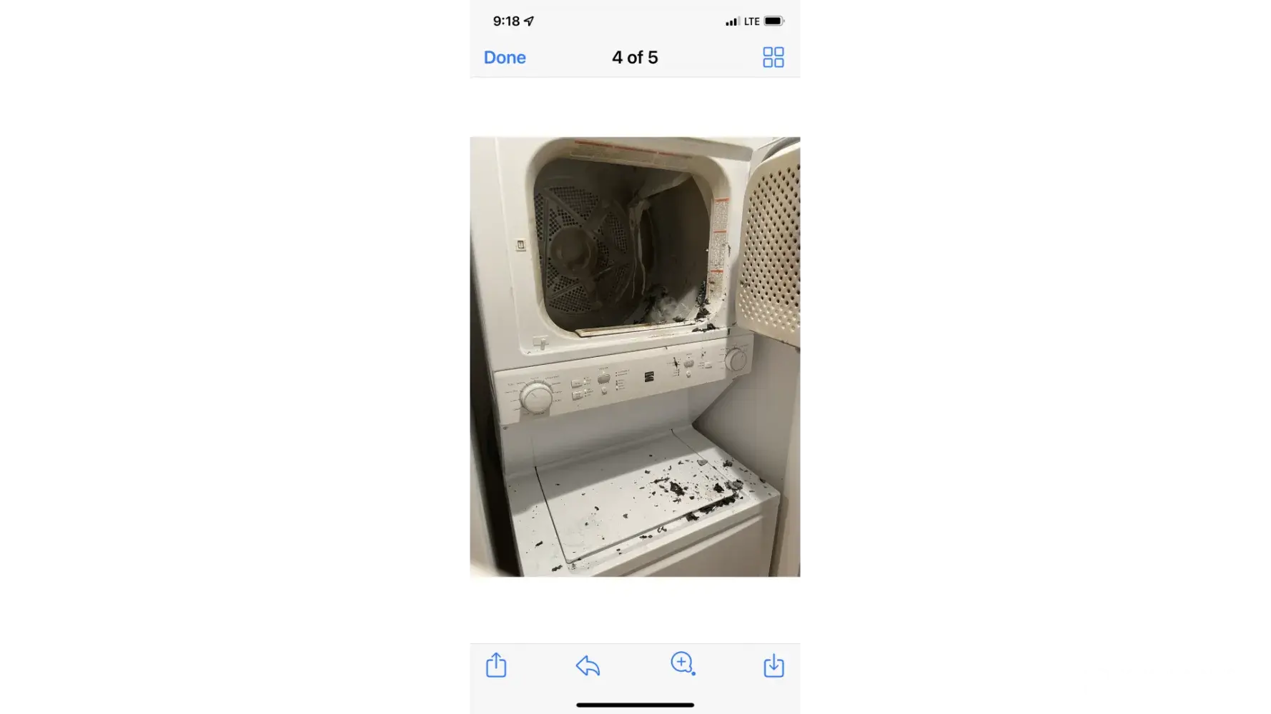 Laundry center caught on fire drying a normal load, small load and a load with nothing unusual in it. I have attached pics. This could have been a horrible catastrophe had I not been home and nearby to put it out.