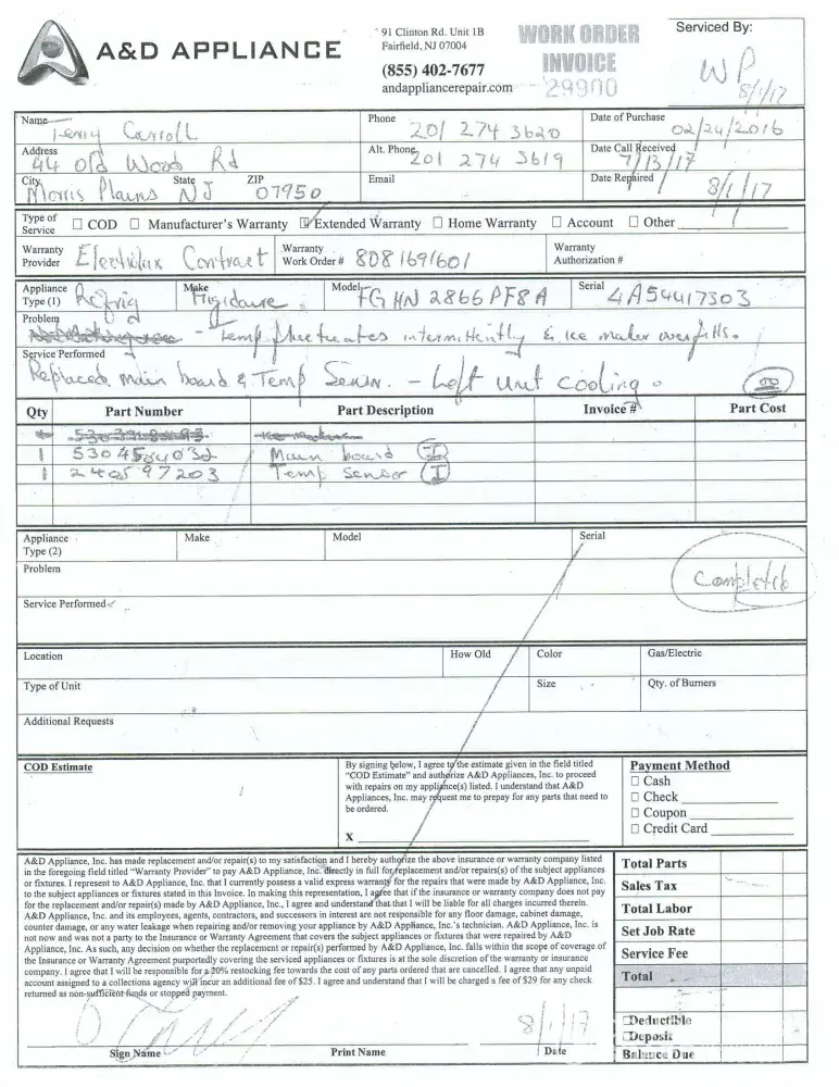 So I want to tell a story I have a Frigidaire Gallery everybody quit working and gave me an error code so I called Frigidaire directly I spoke to representative she was very pleasant and nice I told her about the error code to my Frigidaire Gallery she stated that it was my display and then I told her the center in the ice maker fell down and somehow the wires shorted out the board she says I was correct so she sold me the display board and then she told me who the authorized repair services were in my area the soonest opening they had was a week so I'm going without a frigerator for 10 days and as soon as the repair services arrive at my home he informed me that sent me the wrong part and he told me that Frigidaire should have known it wasn't my display board because the controls for the temperatures were working so I called Frigidaire back and told me that made state that they made and of course they refunded my money for the part and for my inconvenience I asked him to send me the mainboard for my inconvenience and I had to take off work for the day so I lost a day worth of wages and the representative I spoke to said she could not do that so I asked to speak to a supervisor she said why he's going to tell you the same thing I would like to know if it is Frigidaire policy for a representative answering the phone to tell me what a supervisor is going to do so regardless to say I'm out of a day's worth of wages and broken 1500 refrigerator does Frigidaire even care about the people they serve #Jonas Samuelson