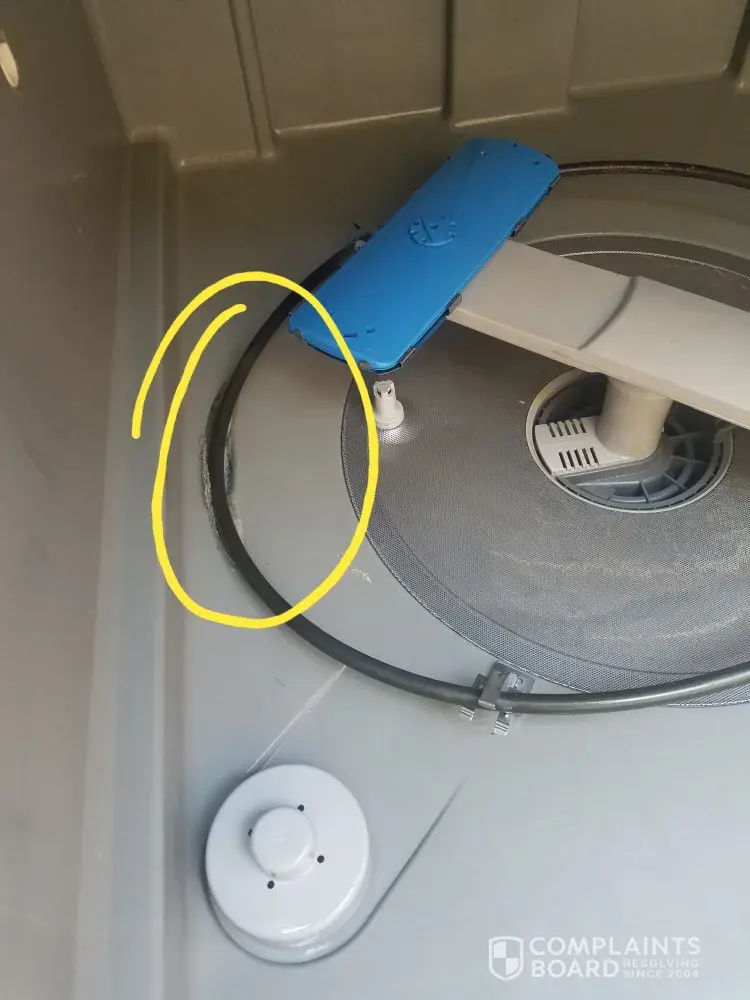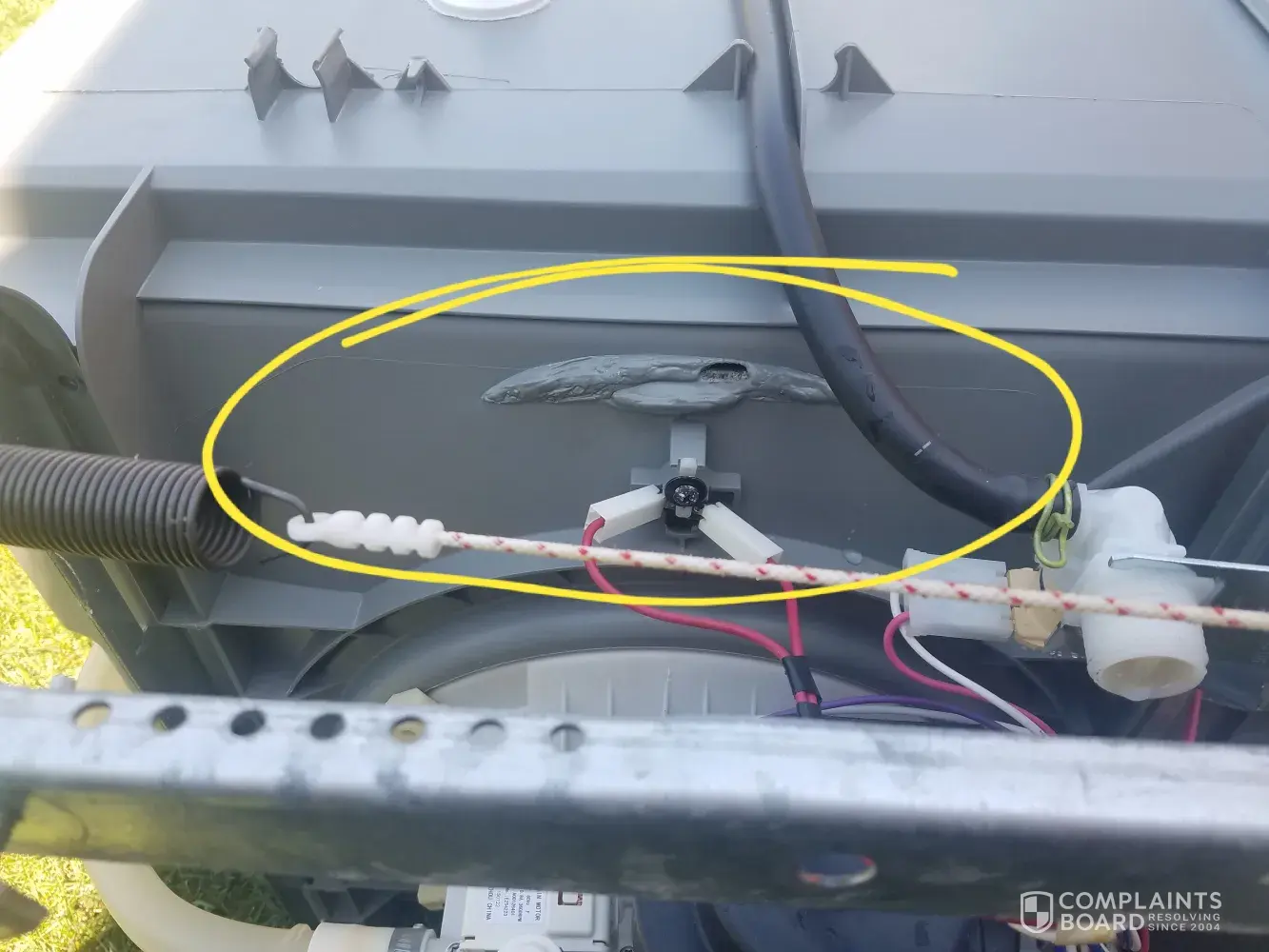 After no help I had no choice but to continue in with the plumber once he got into the dishwasher he discovered a hole in the bottom of the dishwasher. Â The heating coil/ring was only clamp had fallen and melted through the dishwasher. This issue caused damage to my floor, my ceiling, Â and had to make me purchase a new dishwasher that was only installed in May 2016.
