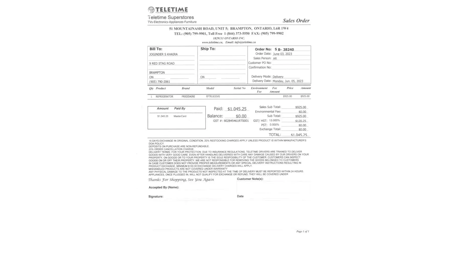 I have bought this unit on June 3, 2023 from dealer Teletime 51 Montainash RD Brampton ON, Canada. Fridge did not work even for 10 days. There was not cooling in main compartment. I have called the dealers so many time no reply and finally I have been told we can not help talk to Warranty personals. Than I have talked to their REP. Their technician reported them that it was major manufacturing defect doors have to be replaced. I told them to replaced the unit