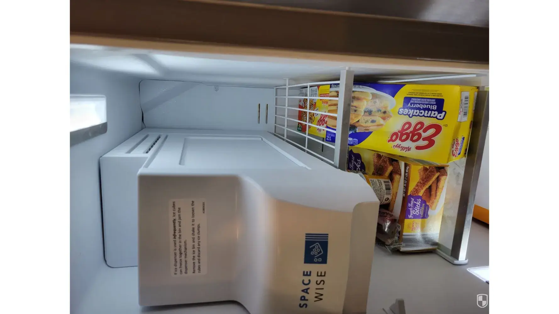 The freezer section has a manufacturing paint defect on a back interior food side panel inside the fridge. There are air vent slots on what looks to be a powder coated metal panel which is the back interior wall surface of the freezer. These slots have rusted on the tips where the surface coating manufacturing process failed to get a good even covering.