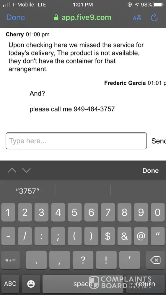 Read full complaintQuality of order