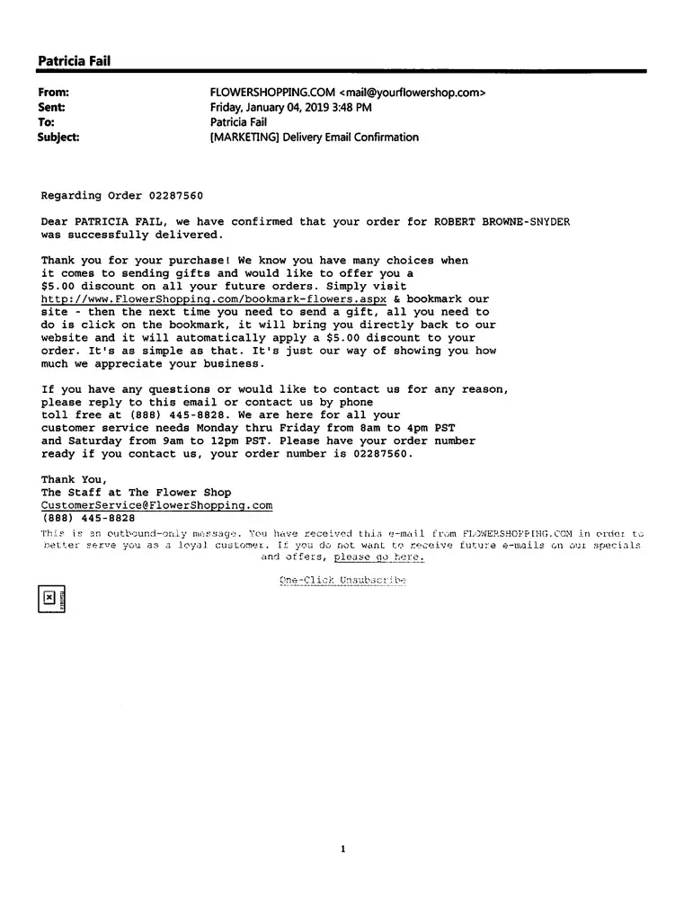 Please contact me at your earliest convenience so I can assist you. My direct line is [protected] and my name is Robyin. Please have your order number so I can take care of it for you. I look forward to hearing from you. Sincerely, Robyin From You Flowers LLC