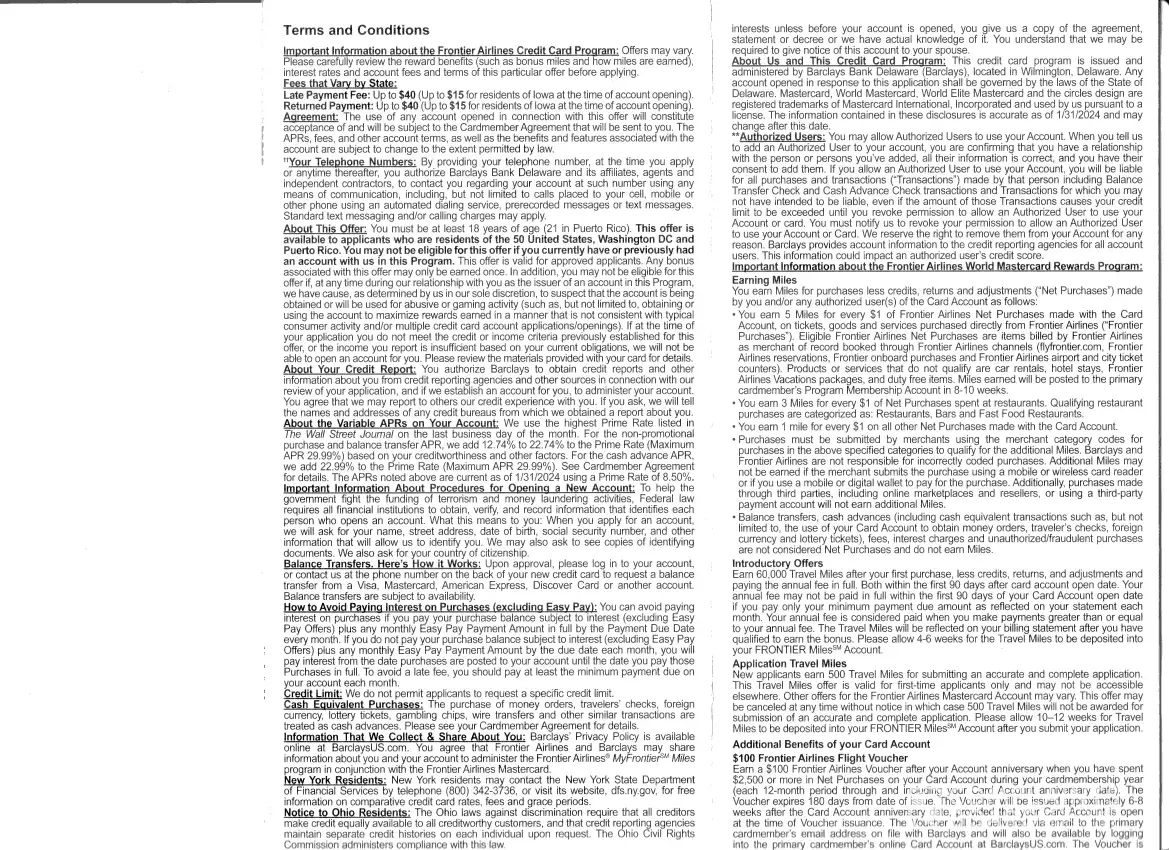 While I was on that plane I even asked the flight attendant about the conditions and she said, "you can just buy a pack of gum and that counts as a purchase." Actually when they announced the deal on the plane I was the only one who raised my hand for a brochure. Somehow the other passengers sensed it was a fraud. I gave away personal information to get the credit card and got nothing in return. I spent a long time with chat agents and all they say is, "sorry the brochure is not accurate"