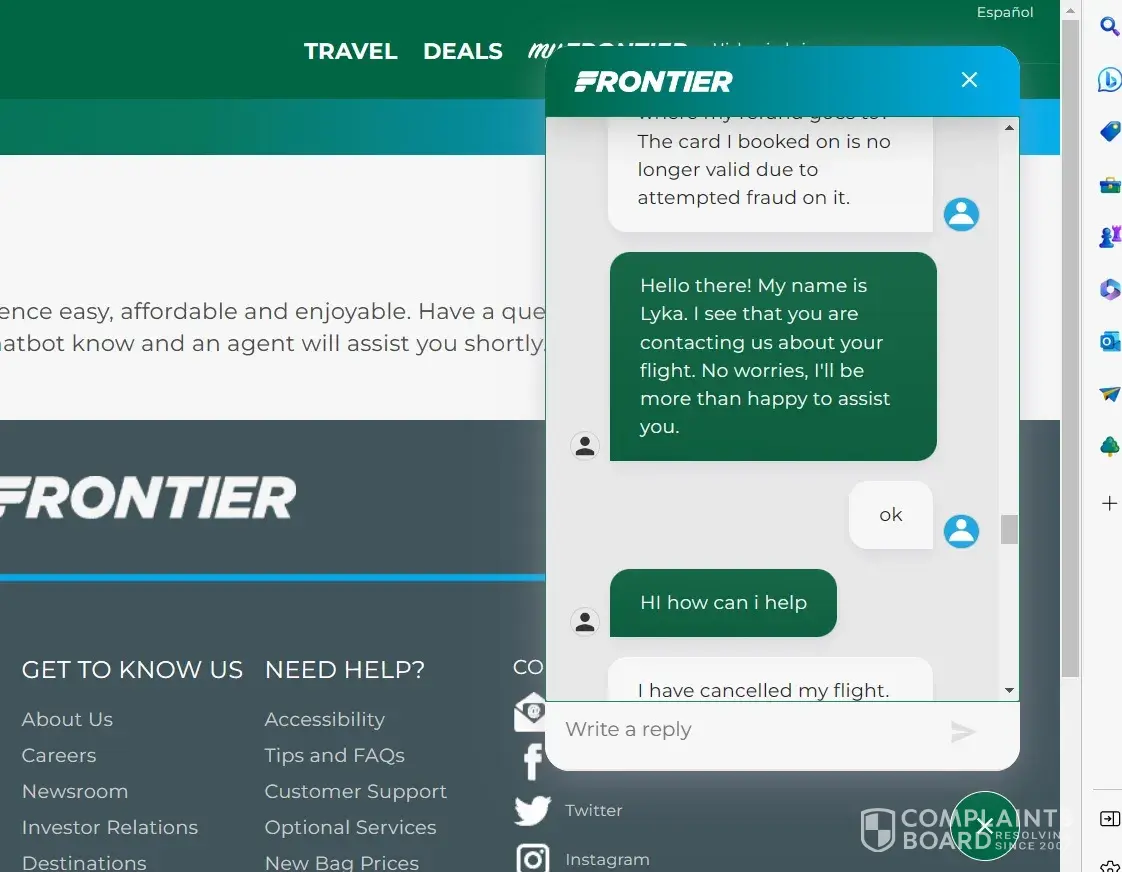 I immediately asked her if she could assist me with this refund since I clearly do not have a carry on. She told me no she could not at this time and Frontier would make the adjust if I just call them when I get home. I attempted to find a number to call, however the only way was to send an email and I did. Frontier advised I could not get a refund because my trip was completed. I was doing what the customer service rep advised me to do, I attempted to handle it before our flight, but was denied the opportunity to. The response I got is below..