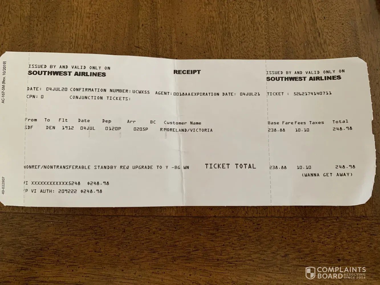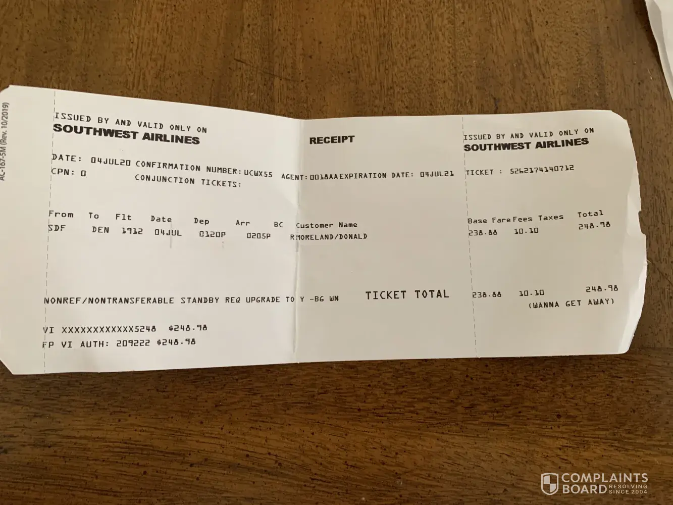 We were issued a $249.74 credit for flights that cost us $678.