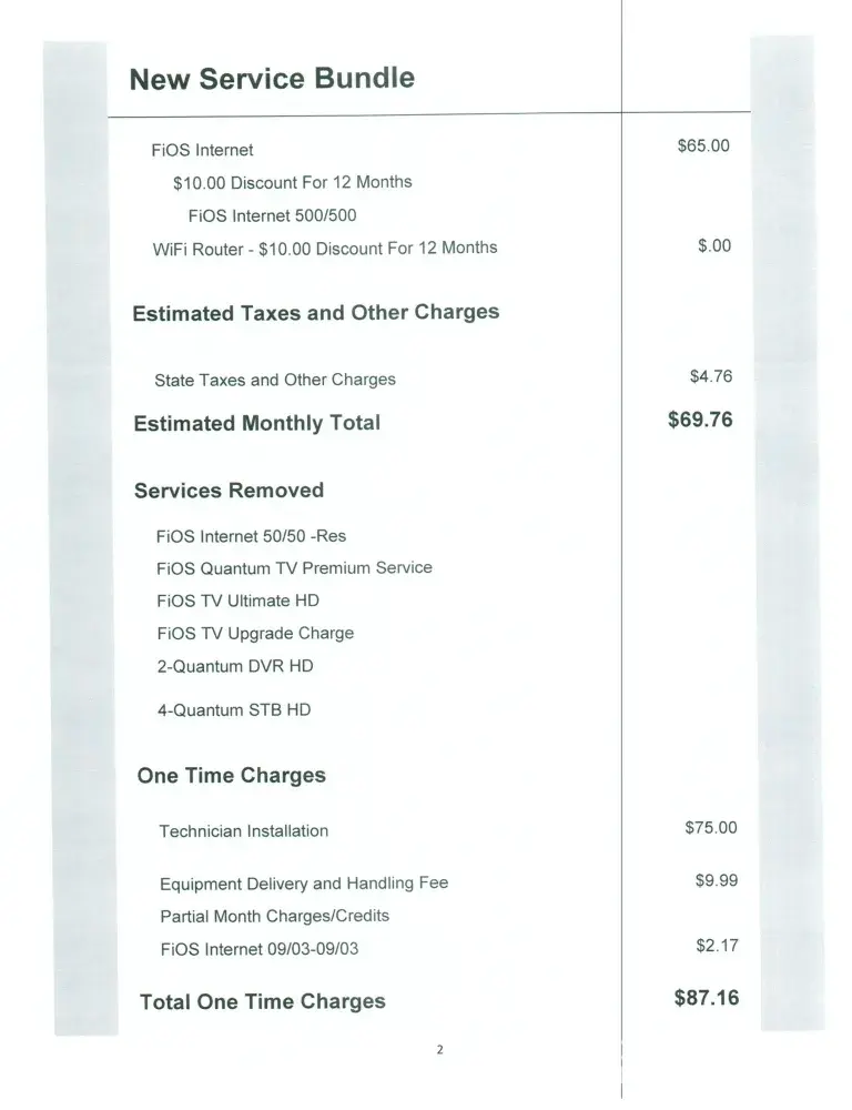 I had called to change my service only to internet, told them I didn't need a router as we have one. I was quoted one price which was emailed to me as well. The day the tech came after he left I received an email explaining our new services which was more money than original quote. Called and was told they had to review my phone call, asked if they could just look at the email originally sent to me. They told me they couldn't, then asked if I could email it to them. Was told they can't accept emails. Was told it would take 7-10 business days, of course never called. I called back yesterday which was the 10th business day and was informed that I was misquoted and they DON'T honor their own quotes! The lady that was helping me was very unprofessional; I asked if it was stated in the notes that I physically didn't accept a router (this is why the bill is more as I am being charged for a router) she said yes. I then asked a year from now when i cancel, which we will as that is when contract is up, and they come up with a reason to charge me for a router. She said its in the notes, my response is well that is not good enough. How am I suppose to take your word when your emails mean nothing? Her response is I don't know what to tell you or what you want. It's in the notes that's all i can do. I was then transferred to tech support as I said send me a router so I have it in my possession and specially since I am paying for it. Bottom line, how does a company not honor their own quotes? and to be so uncaring about it. Frontier is so worried about getting new customers they could care less about their current customers.