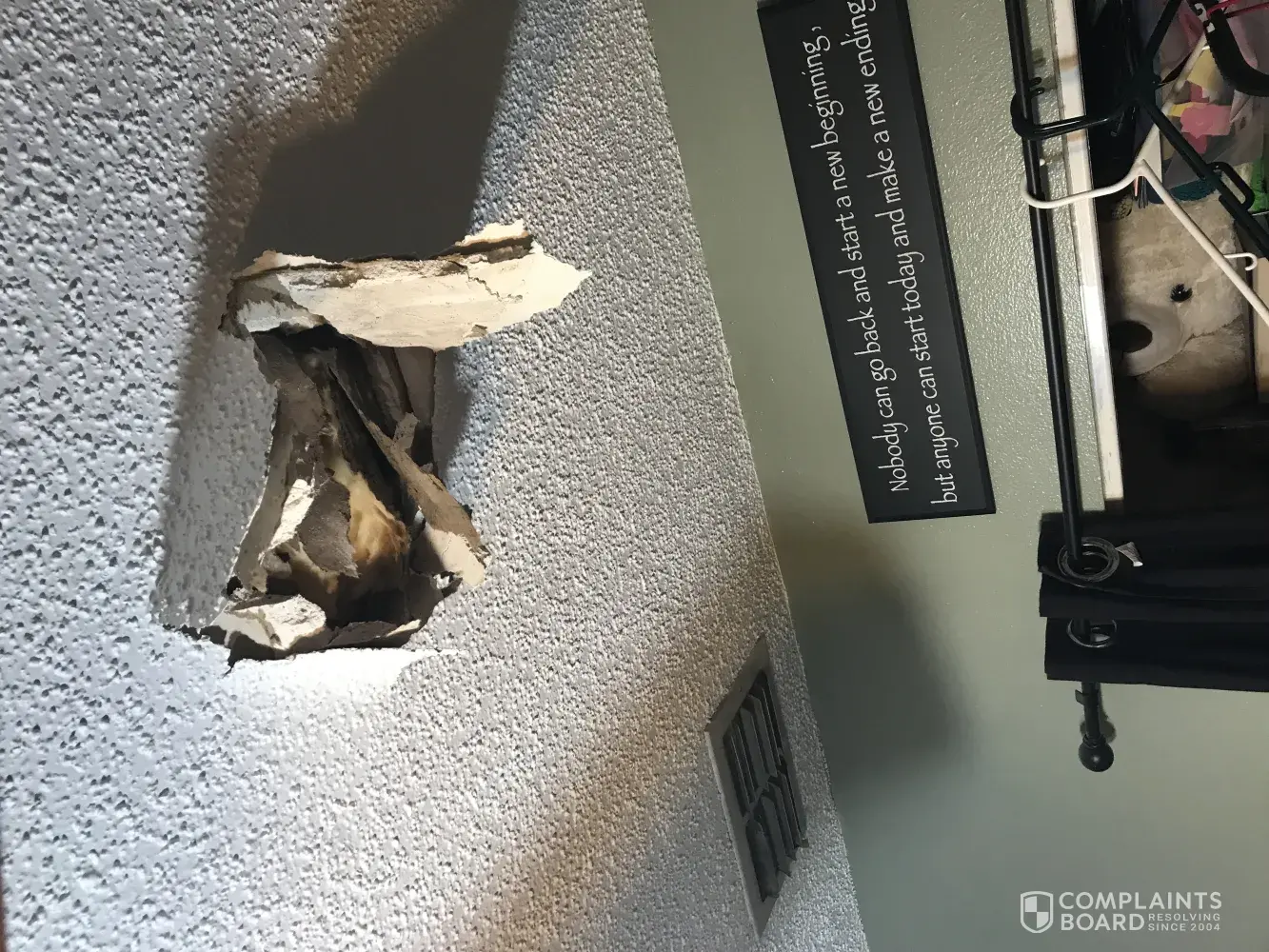 Install guy came to install internet . He went in the attic to drop a line . I had bedroom doors closed . He installs and leaves . My daughter just cane home from the weekend and opens her bedroom door to giant HOLE in her ceiling ! Like WTF. No kone is answering the phone at Frontier . I need this fixed. This guy NOTHING to me !! Nothing, how do you not...