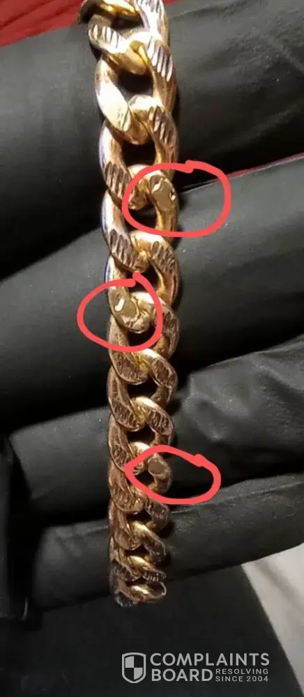I went to their website to get a 20 gram 9 inch solid gold Figaro bracelet. They sent me a 16.7Gram 9 inch hollow gold Figaro bracelet. The item also arrived dirty with black mud on it. Also it took 8 business days when they advertise 5 to 7. I do not want the incorrect item I would like a refund or replacement. After a back and forth with them they would not honor either. So I told them I would dispute it with AMEX. They then issued a partial refund even though I said by this point that was not an option and I wanted a full refund since they did not send me the correct Item I was not on the hook for return shipping ect. I am still in an argument with them about taking back this Item. So far I am 4 hours into this arguing and I would like help. Thank you